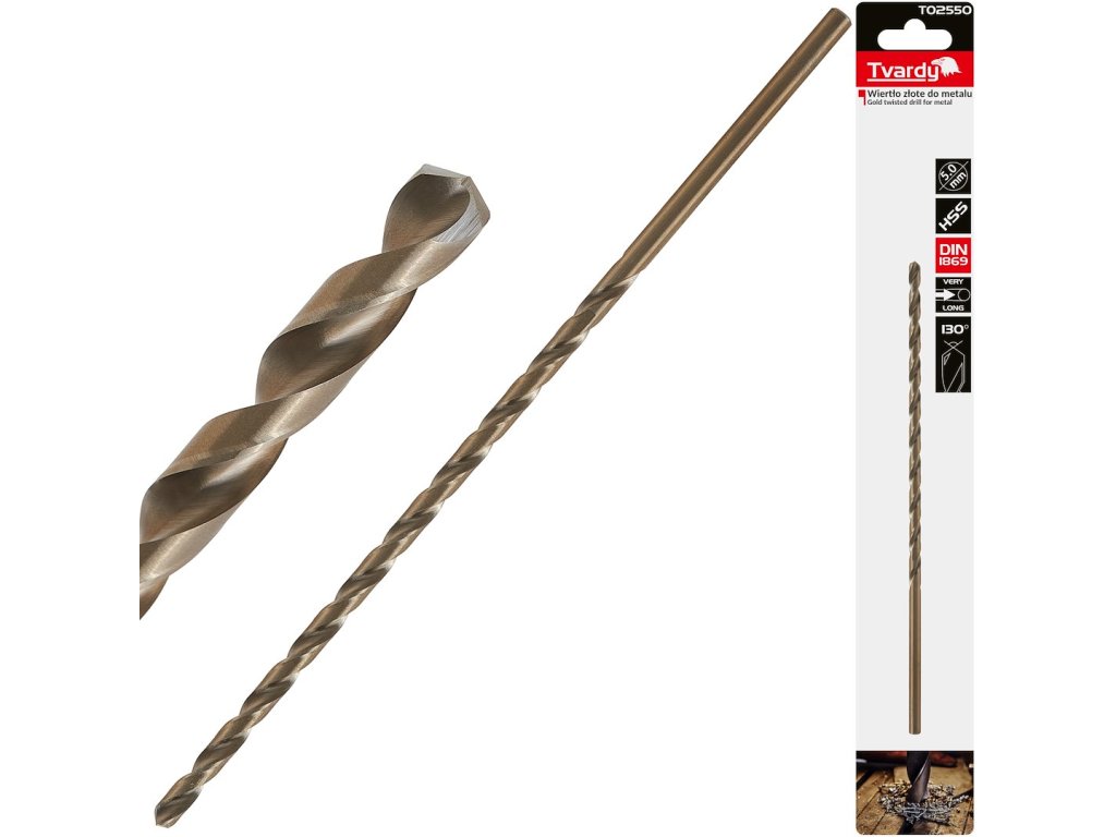 Zlatý vrták do kovu, dĺžka 5,0 x 195 mm, HSS DIN1869 (50/200)
