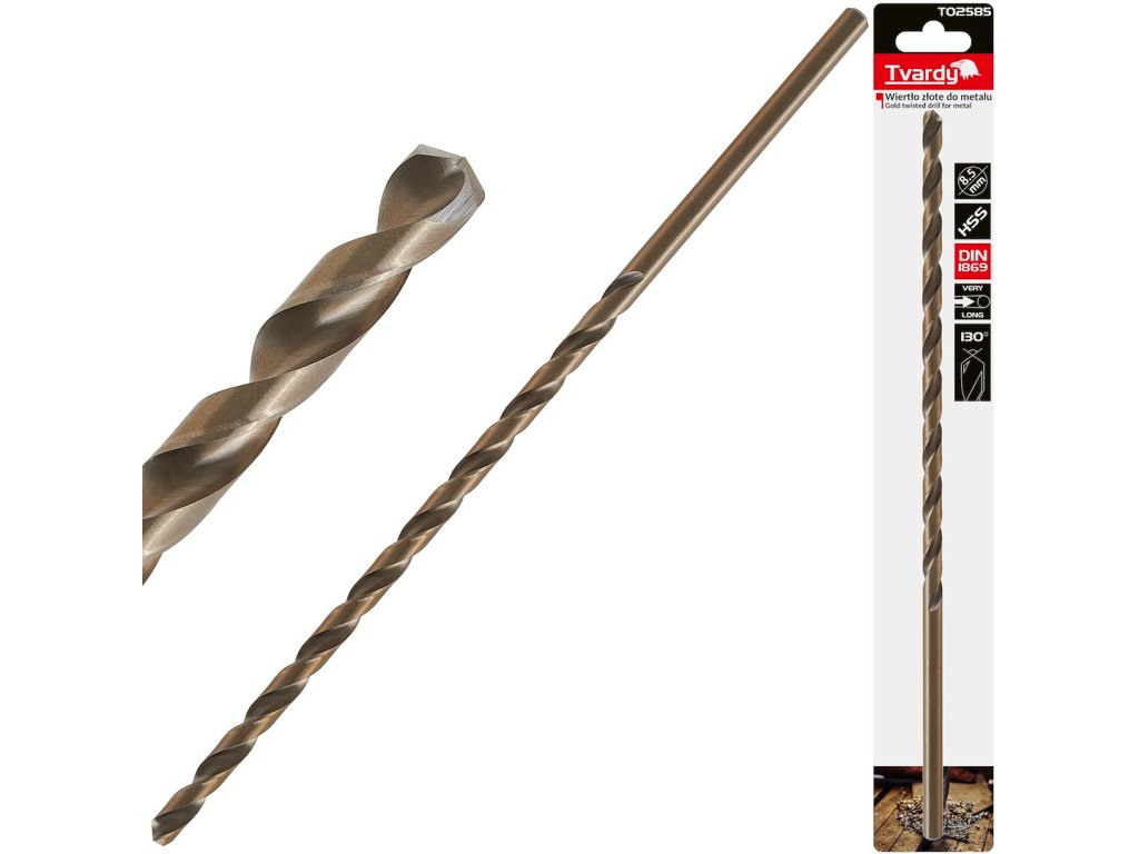 Zlatý vrták do kovu, dĺžka 8,5 x 305 mm, HSS DIN1869 (25/100)