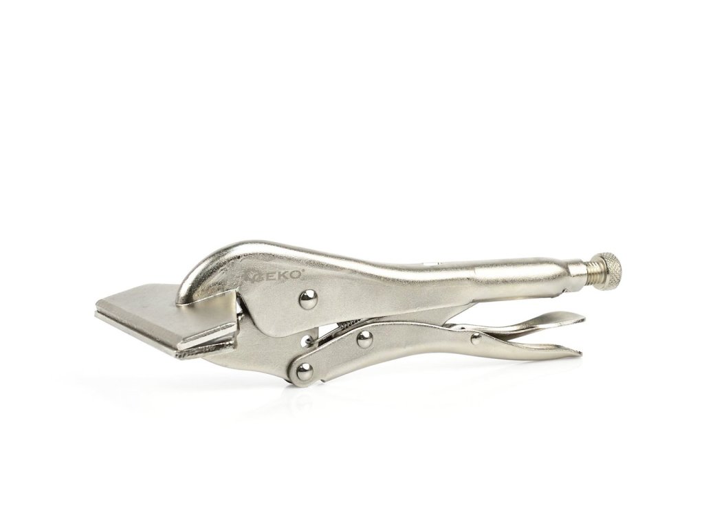 Ploché zváracie kliešte. Ideálne pre profesionálne zváračské dielne. Spodná nastaviteľná samosvorná čeľusť umožňuje pevné zovretie čeľustí na vybranej súčiastke, čím sa zabráni jej skĺznutiu a posunu.