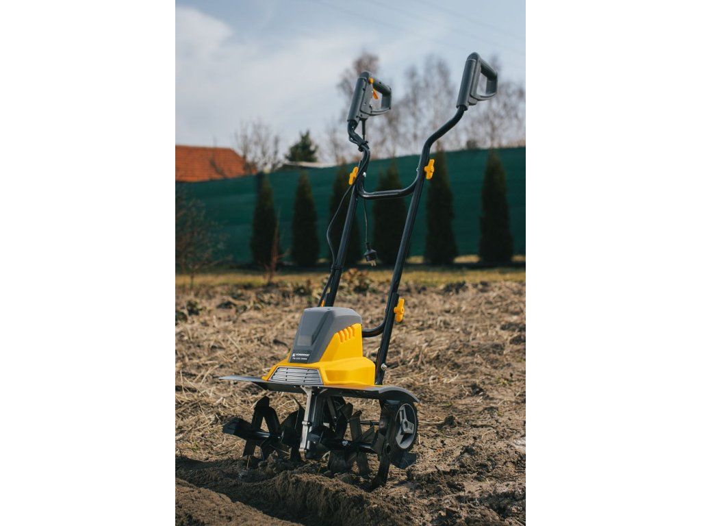 Elektromotor s výkonom 2000 W poskytuje dostatočný výkon na efektívne obrábanie pôdy.