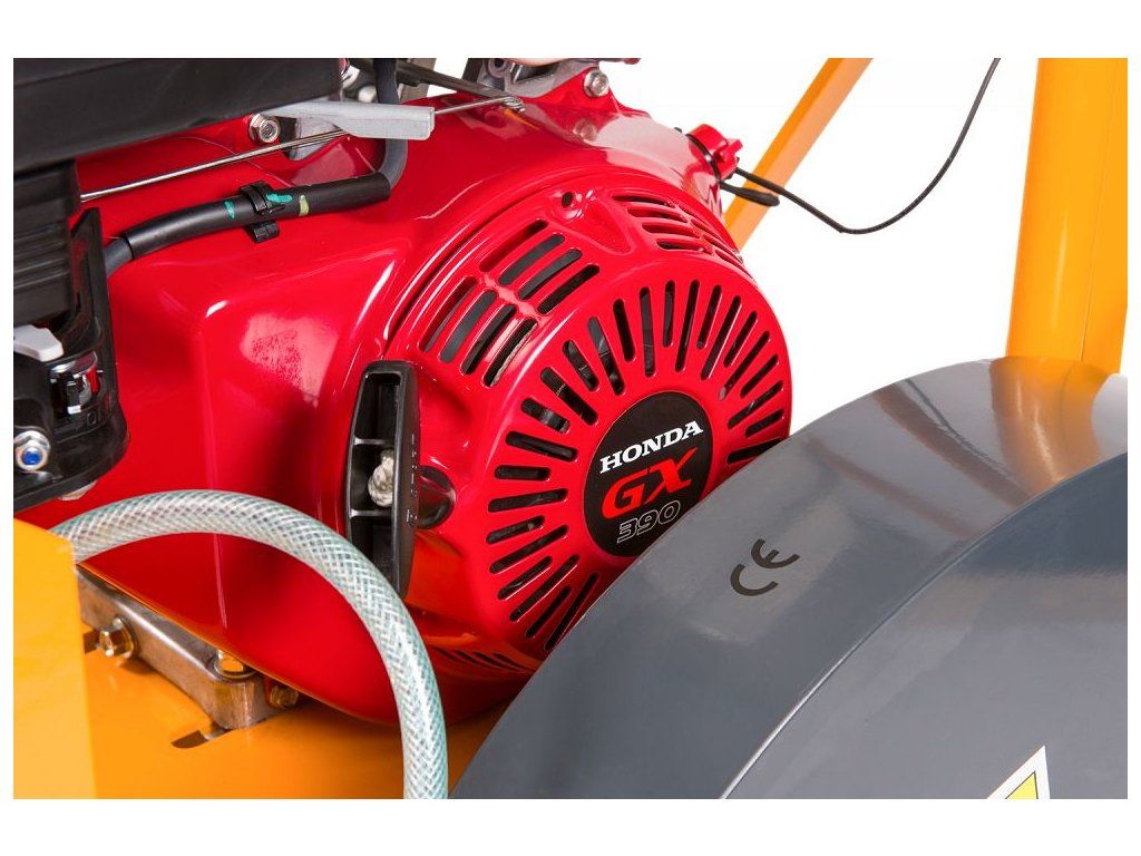 Píla je vybavená výkonným motorom Honda GX390 s výkonom 13 HP, ktorý zabezpečuje efektívne a rýchle rezanie asfaltu a betónu.