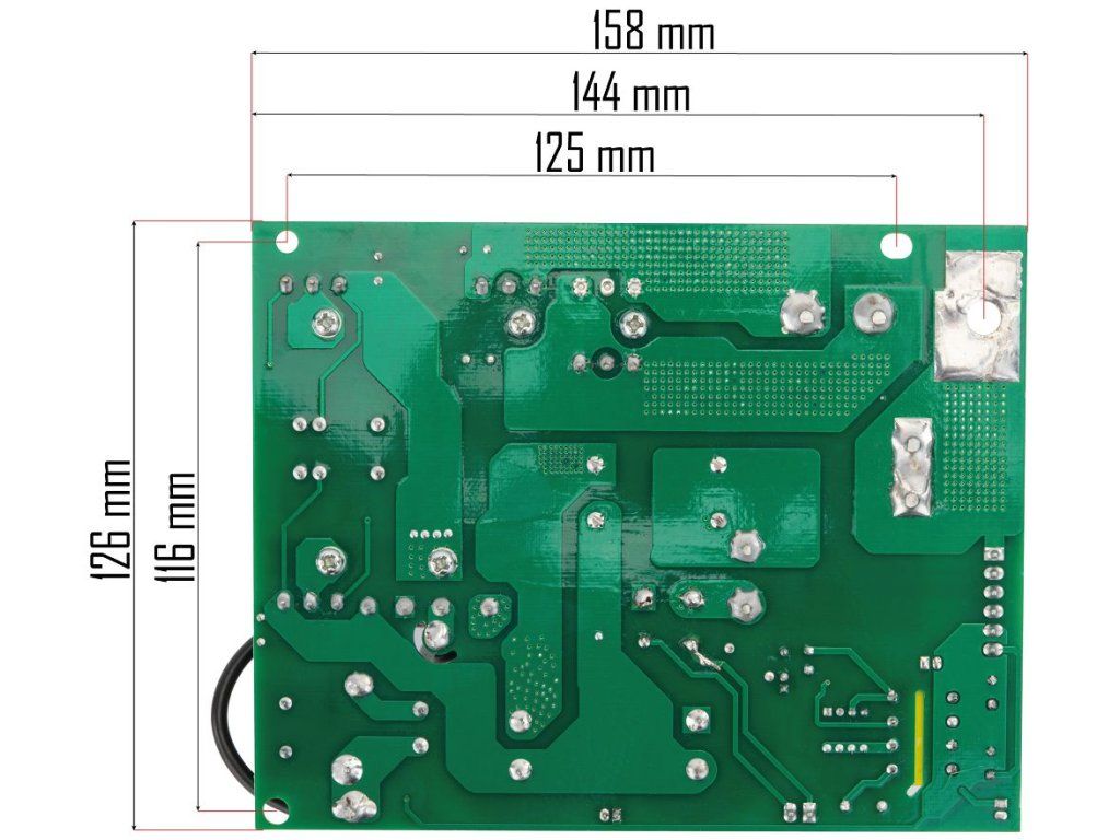 - Aké sú rozmery dosky plošných spojov? Rozmery sú 158 x 126 mm.
