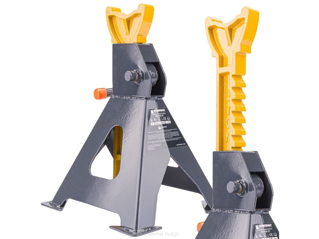 Podpery Powermat 3T sú ideálnym riešením na bezpečné a stabilné podopretie vozidla. Vďaka svojej robustnej konštrukcii a nastaviteľnej výške poskytujú spoľahlivú oporu pre objekty do 3 ton.