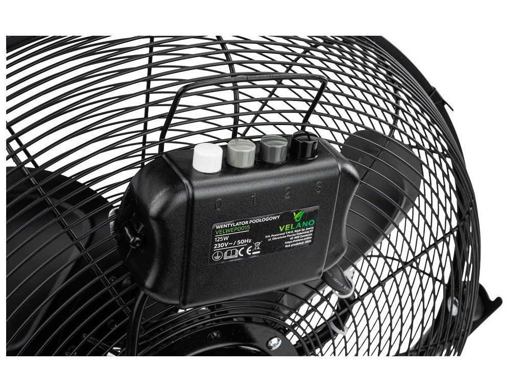 Ventilátor je vybaven silným motorem o výkonu 125 W, který zajišťuje efektivní proudění vzduchu v místnosti.
