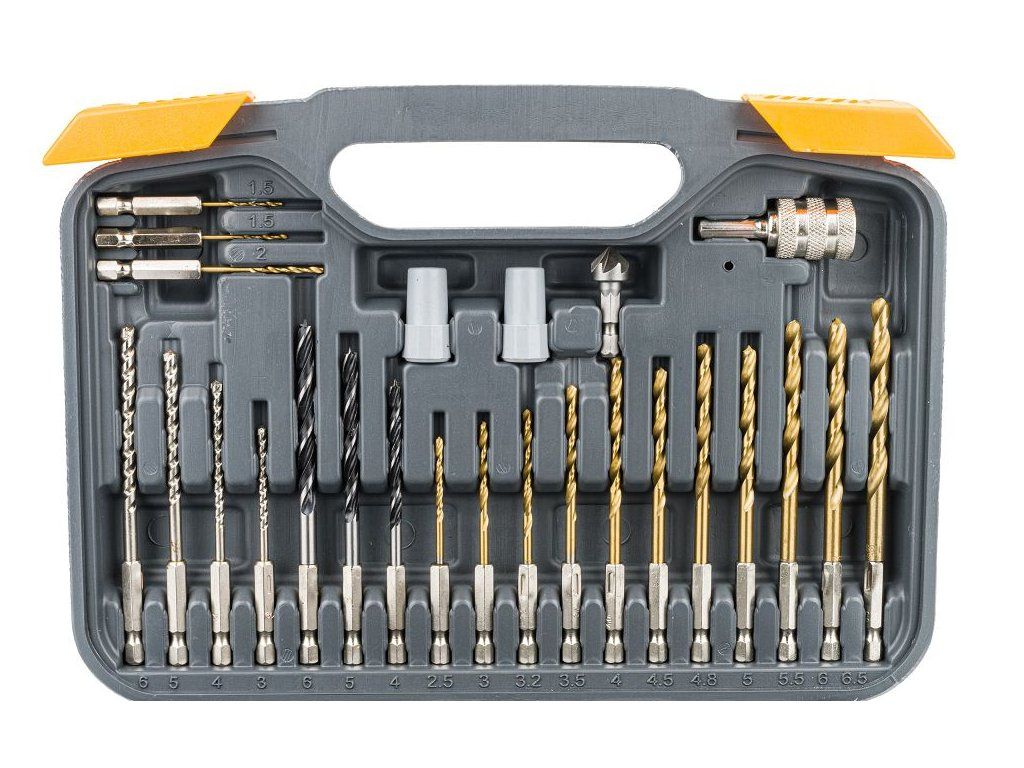 - Vrtáky: Tytanové HSS HEX: 1.5; 1.5; 2; 2.5; 3; 3.2; 3.5; 4; 4.5; 4.8; 5; 5.5; 6; 6.5 [mm]