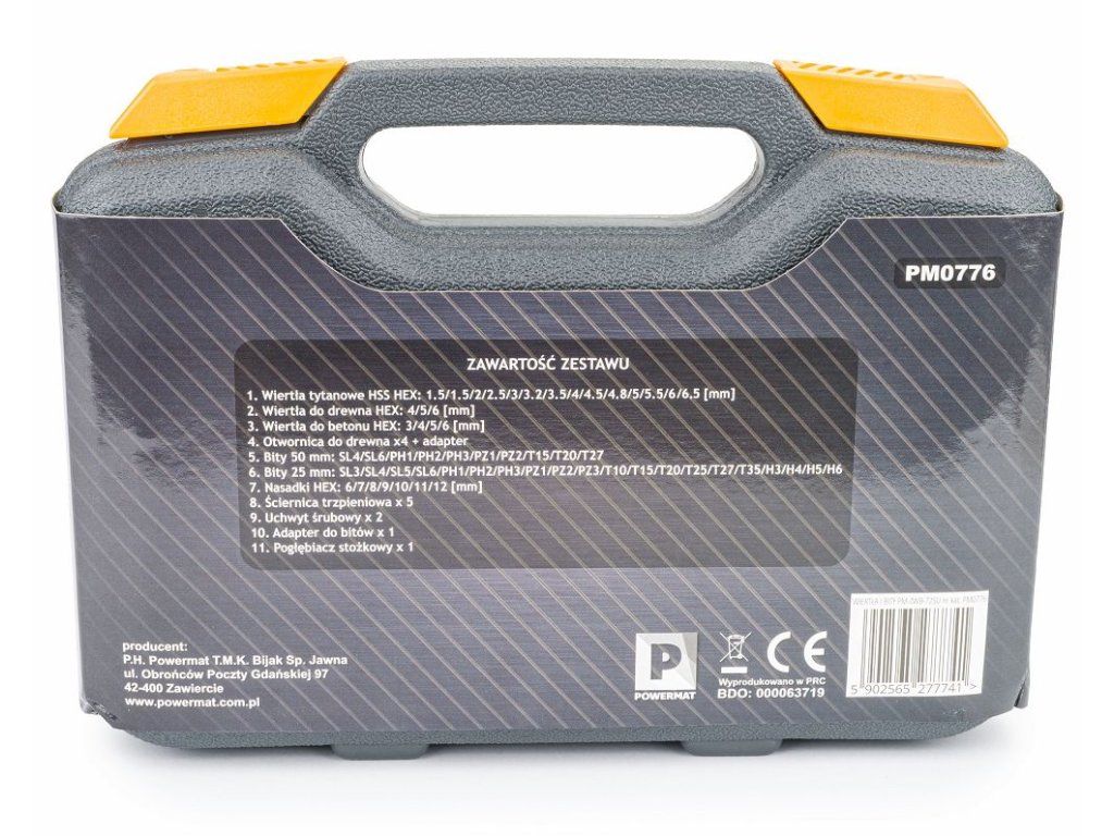 - Bity 25 mm: SL3; SL4; SL5; SL6; PH1; PH2; PH3; PZ1; PZ2; PZ3; T10; T15; T20; T25; T27; T35; H3; H4; H5; H6