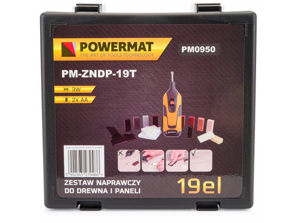 Kompaktní sada pro renovaci dřeva Powermat PM-ZNDP-19T je ideálním řešením pro rychlé a efektivní opravy dřevěných povrchů. Snadno odstraníte škrábance a díry na oknech, dveřích a podlahách. S touto sadou dosáhnete profesionálních výsledků bez námahy.