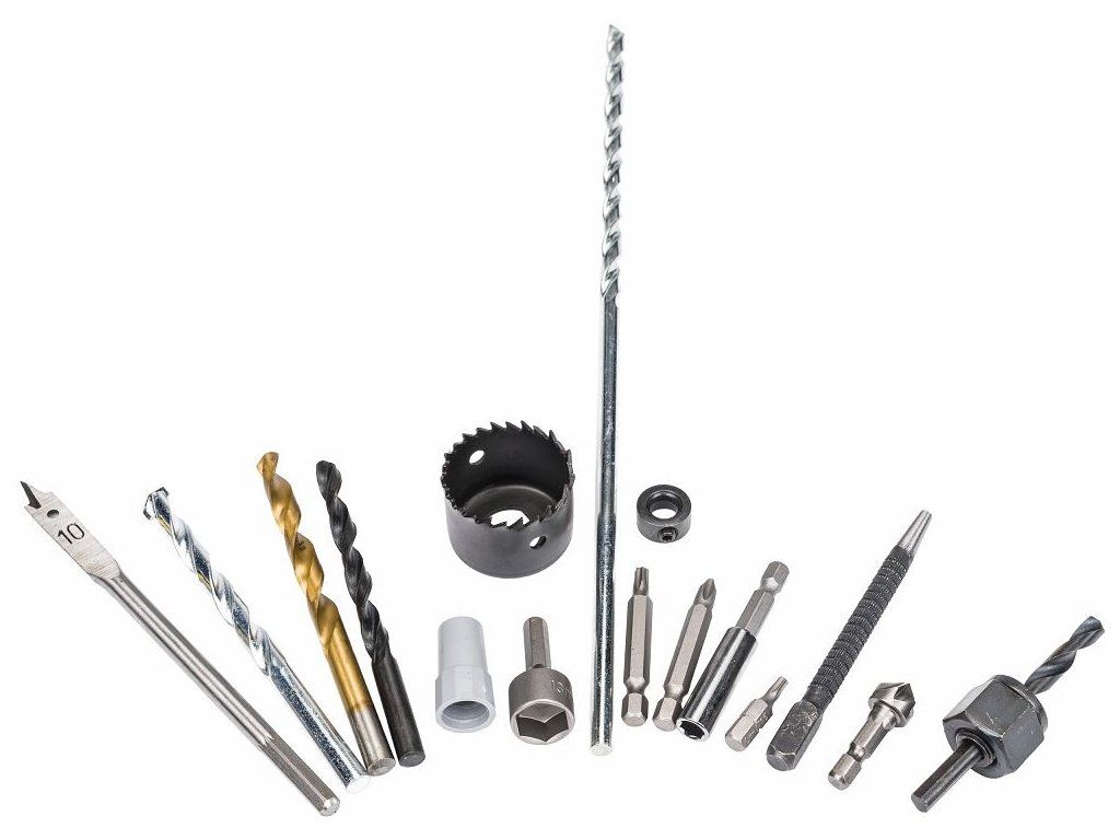 - Široká škála velikostí vrtáků a bitů pro různé aplikace.