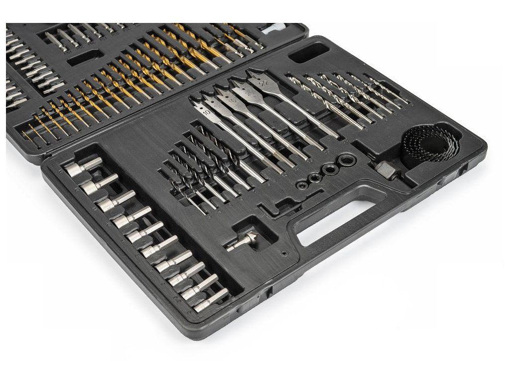 - Obsahuje speciální vrtáky pro různé materiály