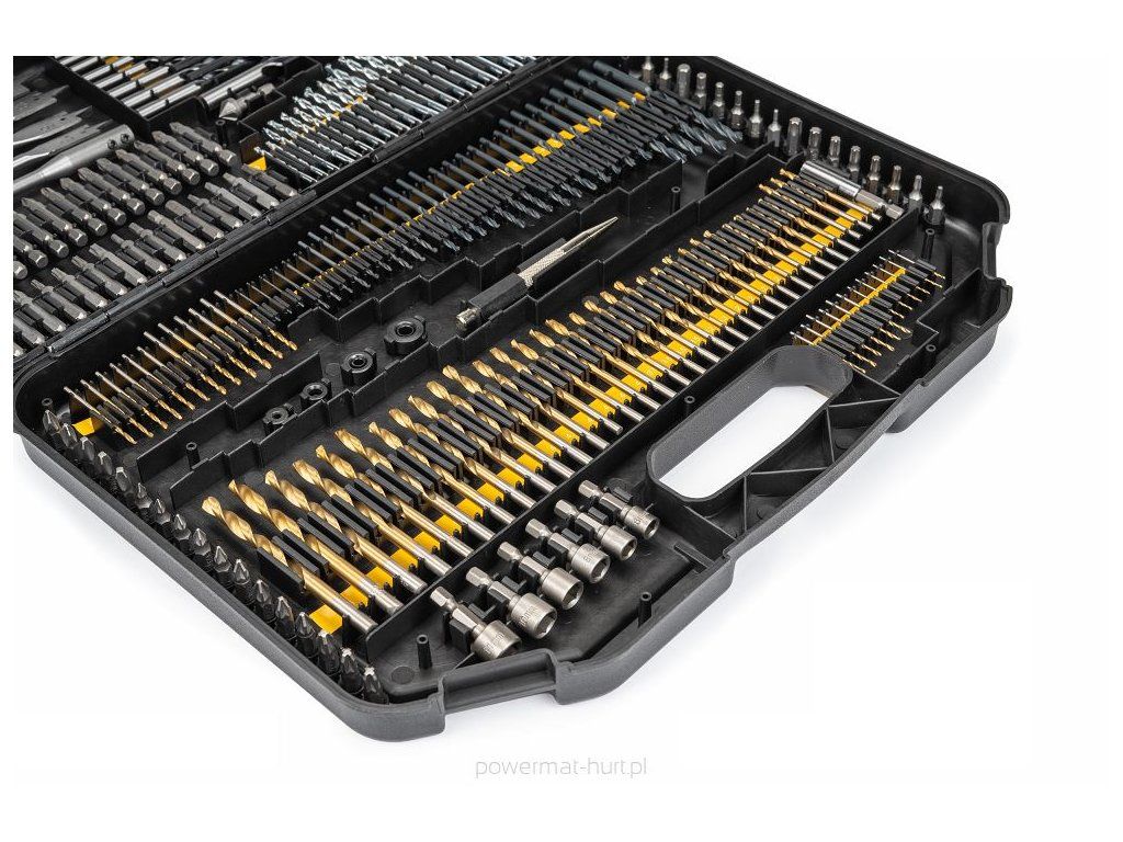 Všechny komponenty jsou přehledně uspořádány v praktickém kufříku, který usnadňuje přenášení a skladování. Už nikdy nebudete muset hledat správný vrták nebo bit.