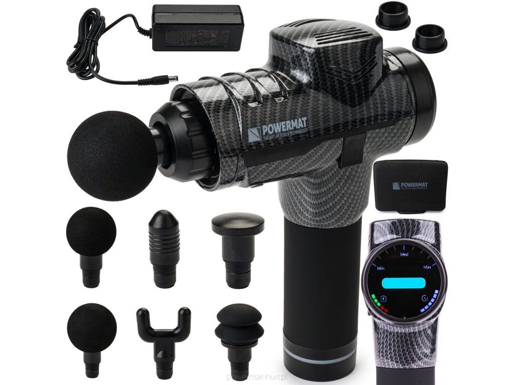 Vibrační masážní pistole Powermat PM-MAS-1800BLM se 6 nástavci