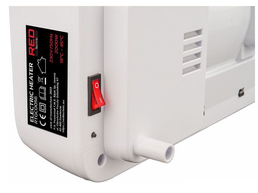 - Moc grzewcza: 0 / 1000 W / 2000 W