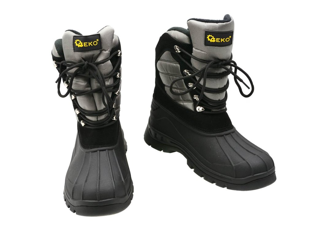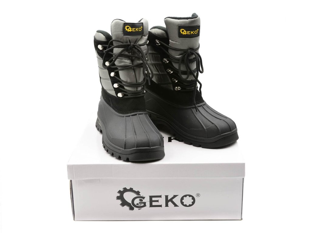 Nepremokavé topánky "snežnice" renomovanej značky GEKO. Spodná časť zvršku a podrážka sú vyrobené z kvalitnej termoplastickej gumy, ktorá sa vyznačuje veľmi dobrou priľnavosťou a vďaka svojej vysokej pružnosti neobmedzuje pohyb a nekladie odpor pri ohýbaní.