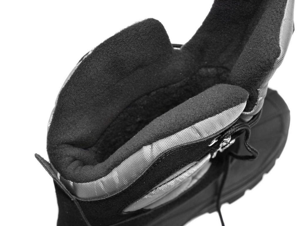Hrubá zateplená podšívka z kožušinového úpletu poskytuje vynikajúcu ochranu pred veľmi nízkymi teplotami. Systém viazania na háčik a slučku zaisťuje dokonalé prispôsobenie lýtku.