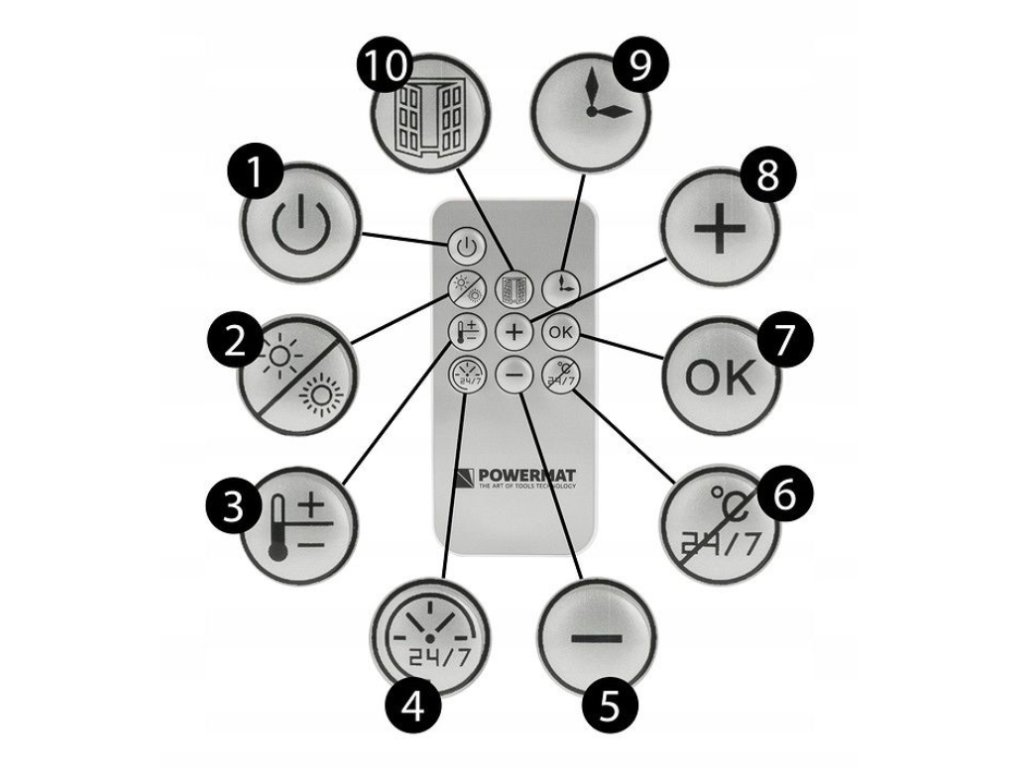 S až do2000 W dokáže rýchlo vyhriať miestnosť bez čakania. Ovládanie je jednoduché - všetko nastavíte naLCD displeji alebo pohodlne pomocoudiaľkového ovládača.