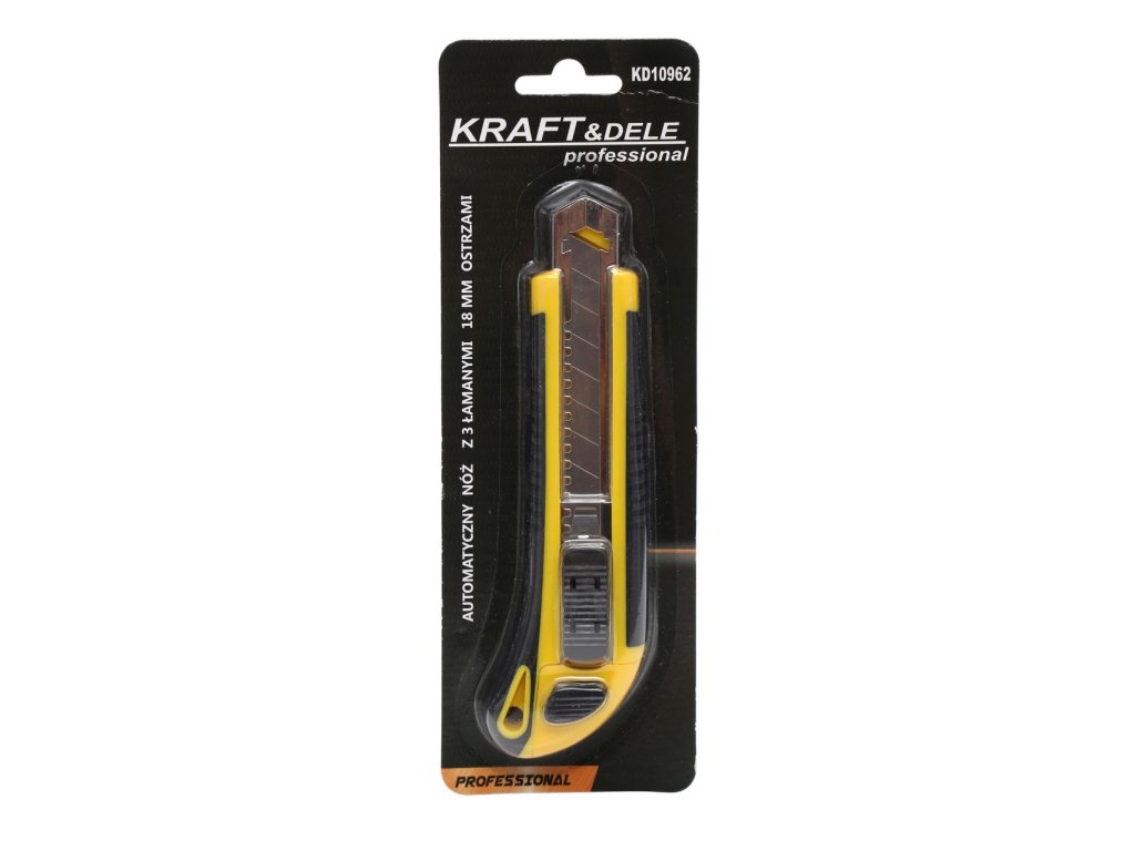 - TECHNICKÝ VÝROBOK Značka: KRAFT&DELModel: KD10962Šírka čepele: 18 mmPočet segmentov: 8Typ sklíčka: KovMateriál: Plastové telo s gumovou zadnou časťouAutomatické zamykanie: Počet čepelí: 3ksPevná čepeľ: 18mm, vysokokvalitná uhlíková oceľ