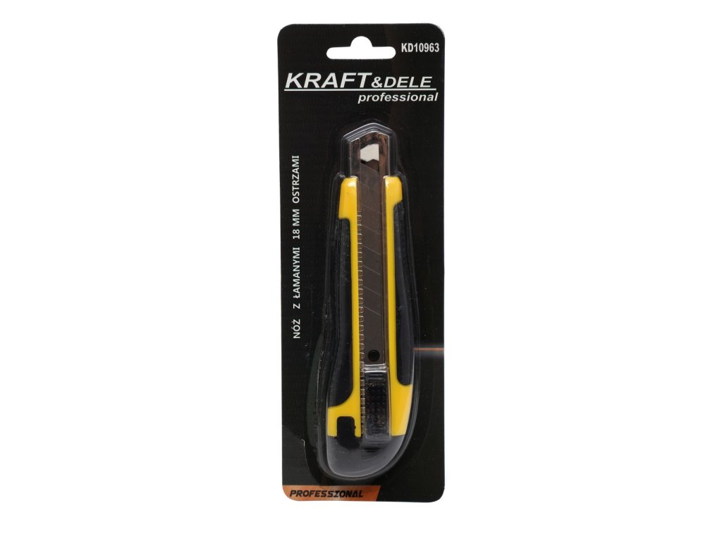 - TECHNICKÝ VÝROBOK Značka: KRAFT&DELModel: KD10963Šírka čepele: 18 mmPočet segmentov: 8Typ sklíčka: KovMateriál: Plastové telo s gumovou zadnou časťouAutomatický zámok: Čepel: 18 mm, vysokokvalitná uhlíková oceľ