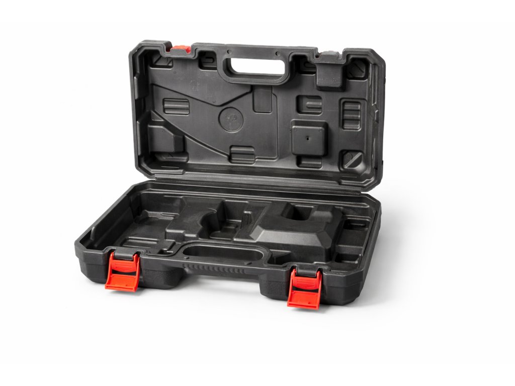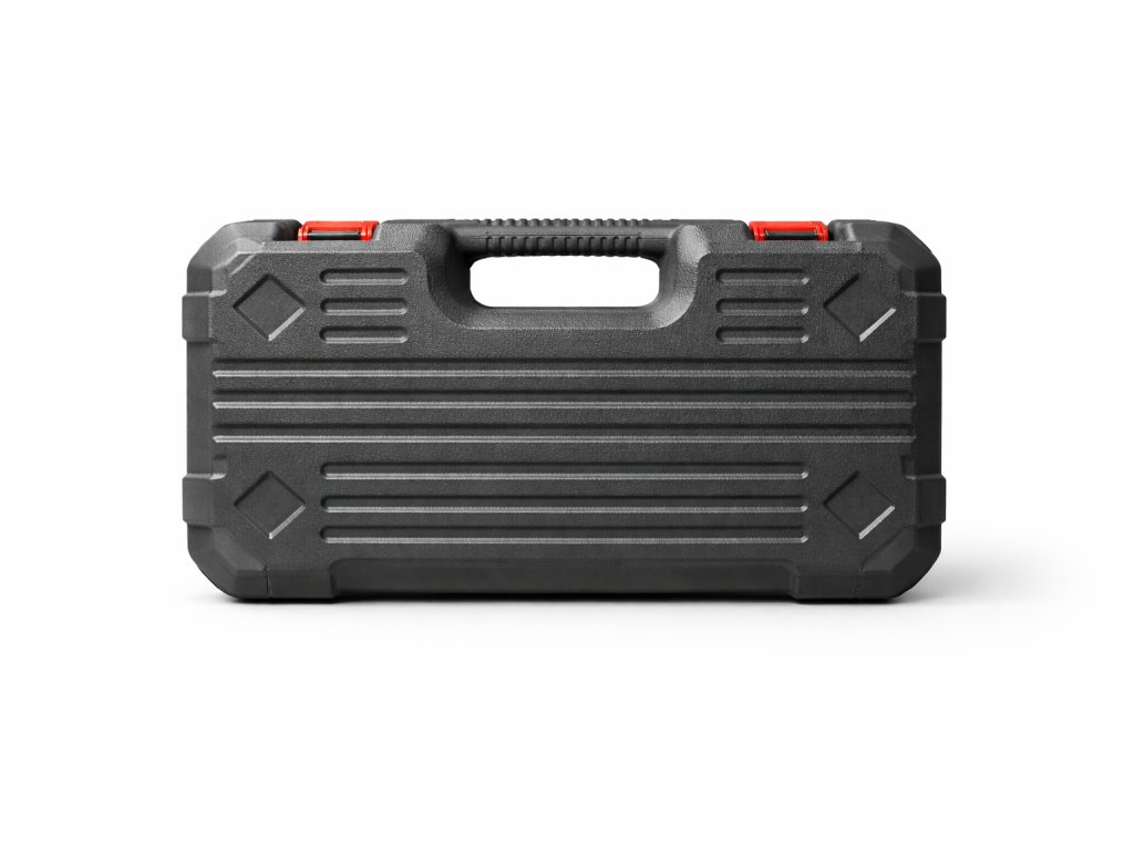 Ergonomická rukoväť dobre padne do ruky a uľahčuje prenášanie aj plne naloženého kufra. Kompaktné rozmery znamenajú jednoduché uskladnenie na poličke, v dielni aj v kufri auta.