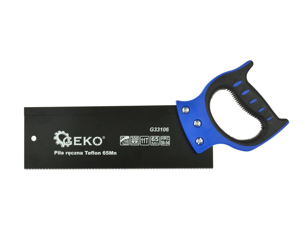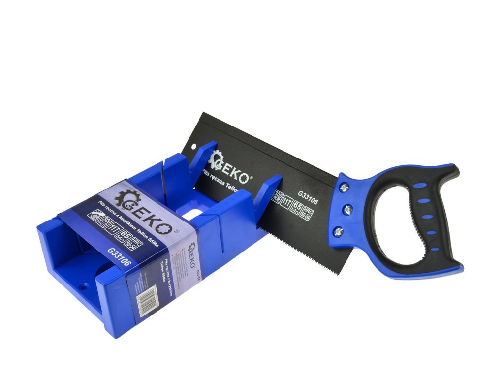 Kvalitná univerzálna ručná píla 300 mm renomovanej značky GEKO. Píla v sade s pokosovým boxom (drážkou) určená na presné rezy pod uhlom 45° a 90°.