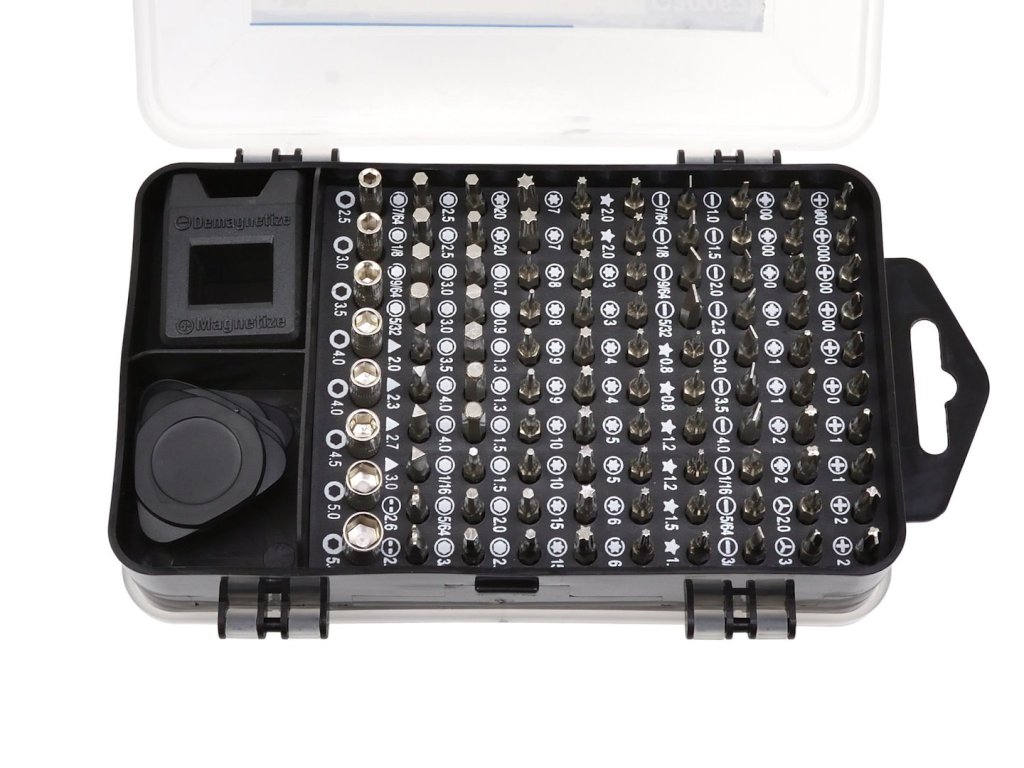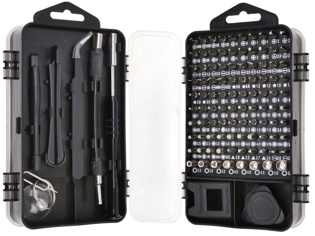 Multifunkčná sada presných nástrojov. Obsahuje kompletnú sadu nástrojov nevyhnutných na opravu telefónov, mobilných zariadení, notebookov a iných predmetov vyžadujúcich presné nástroje, napr. hodiniek, okuliarov atď.