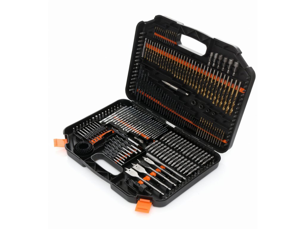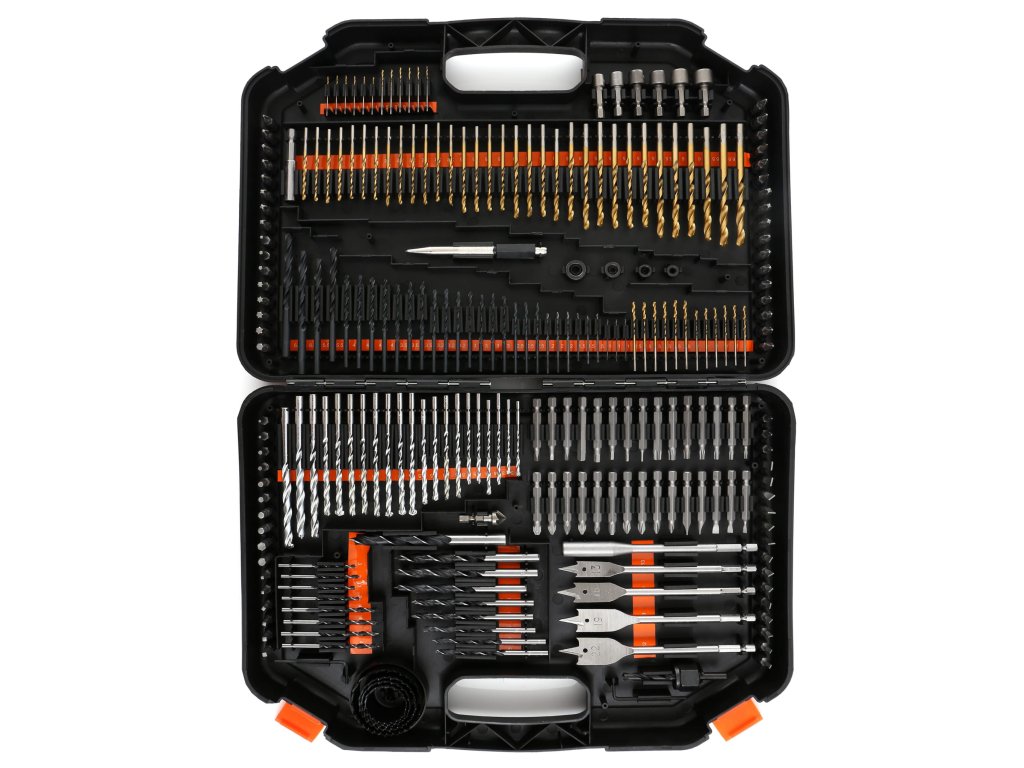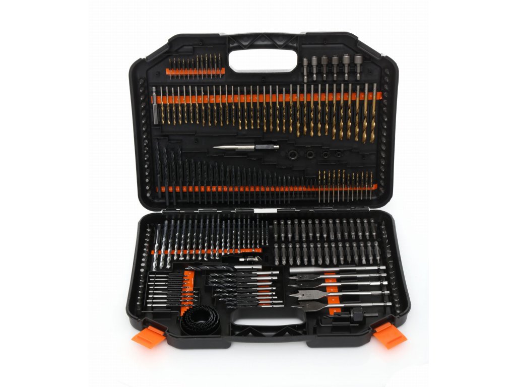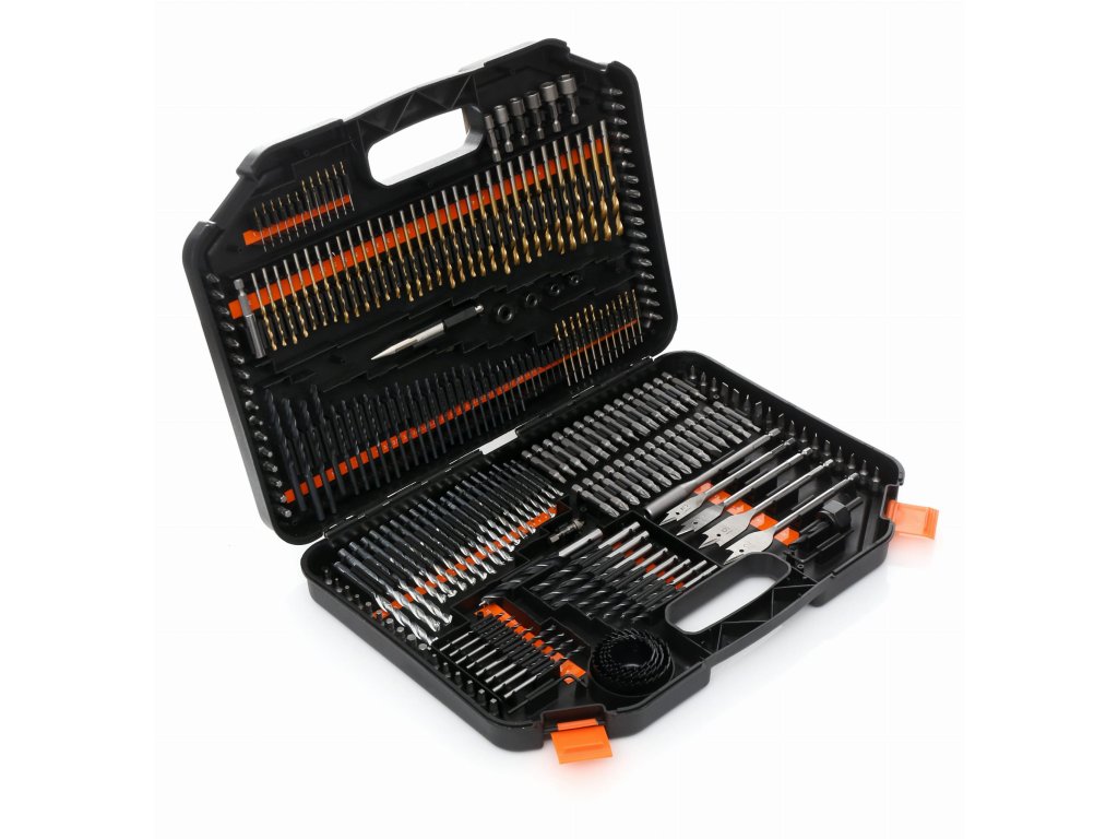 - Obsahuje vrtáky do kovu, dreva a betónu, široký sortiment vrtákov, pichliače, hĺbkové dorazy a ďalšie praktické príslušenstvo