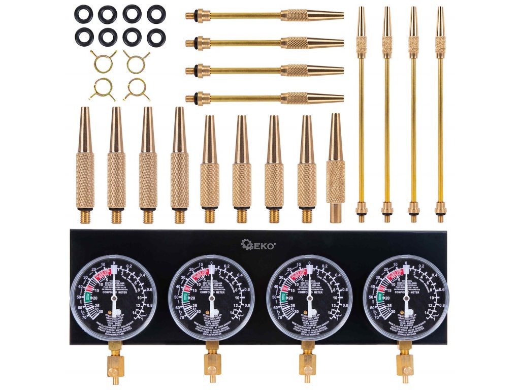 Súprava na synchronizáciu karburátora jenepostrádateľný nástroj pre mechanikov a nadšencov motocyklov a klasických automobilov vybavených viackarburátorovými systémami. Vďakaštyri presné tlakomery, flexibilné hadice a súprava17 adaptérov rôznych priemerov a dĺžok je možné presne vyvážiť podtlak v jednotlivých karburátoroch, čím sa zabezpečísprávna funkcia motora, rovnomerné spaľovanie a lepšia reakcia na plyn.