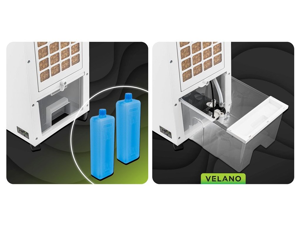 Stĺpový ventilátor Velano s vodným chladením a funkciou ionizácie prináša účinné osvieženie v horúcich dňoch bez potreby inštalácie klimatizácie. Nádrž na vodu prirodzene ochladzuje vzduch, zatiaľ čo zabudovaný ionizátor zabezpečuje čistejšie a zdravšie prostredie. Vďaka tichej prevádzke, modernému LCD displeju a diaľkovému ovládaniu je ideálnou voľbou do domácnosti aj kancelárie. Praktické režimy, časovač a oscilácia zvyšujú komfort pri každodennom používaní.
