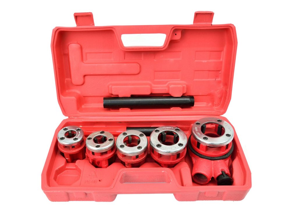Hydraulický závitorez v súprave s 5 závitníkmi. Zariadenie sa používa na rezanie závitov na rúrach a tvarovkách. Je vhodné na renovačné aj stavebné práce. Zuby závitorezu sú vyrobené z legovanej ocele CrV s tvrdosťou HRC v rozsahu 58-62. Liatinové závitové puzdro.