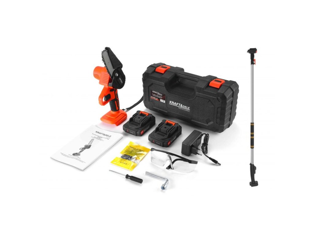 - Značka: Kraft & Dele Model KD10642 Napätie 230 V / 50 Hz Výkon batérie 21 V / 2,0 Ah Veľkosť vodiacej lišty 4" Veľkosť reťaze 170 mm Otáčky bez zaťaženia 320 ot