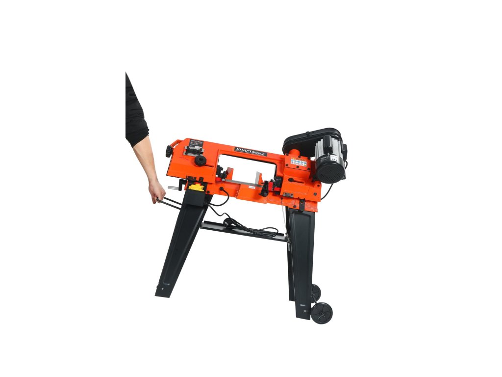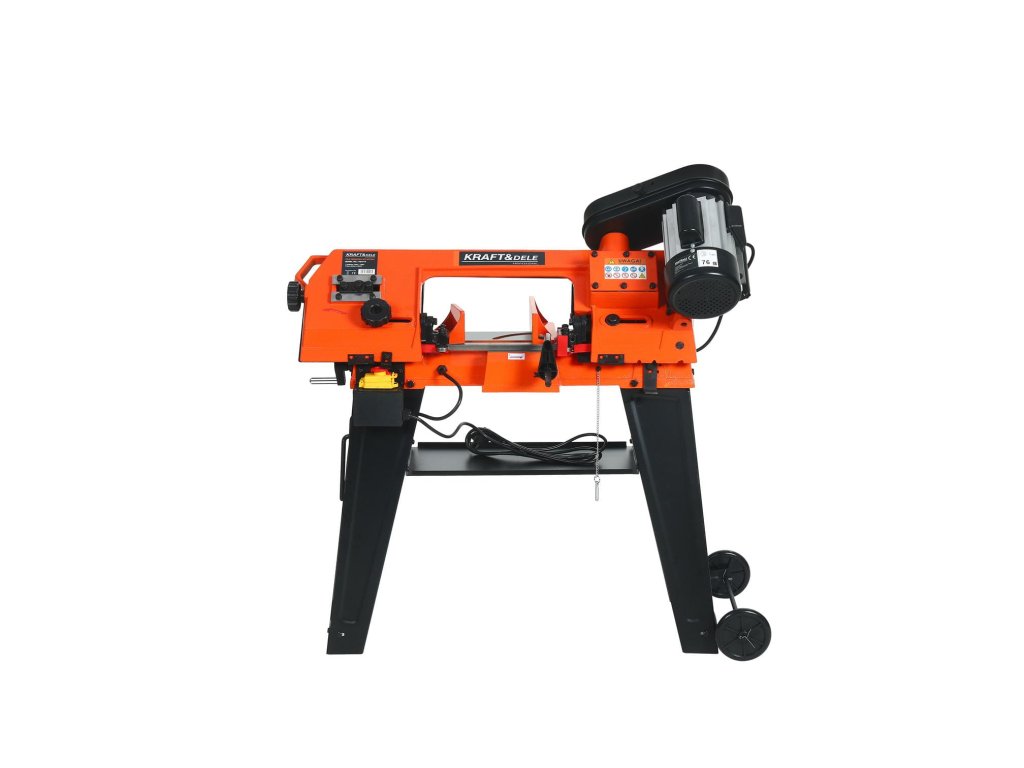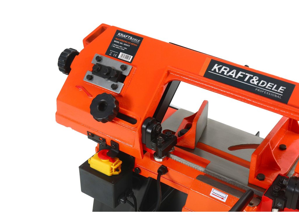 - TECHNICKÝ VÝROBOK Značka: KRAFT&DELE Model: KD5475 Typ zariadenia: pásová píla na kov Napätie: 230V / 50-60Hz Príkon zariadenia: 850 W Otáčky motora: 1450 ot/min Otáčky pílového kotúča: 24m/min; 36m/min; 54m/min Max. priemer kruhového profilu pri uhle rezu 90o: 110 mm Max. max. priemer kruhového profilu pri uhle rezania 45o: 75mm Max. rozmer šesťhranného profilu pri uhle rezania 90o: 110x140mm Max. rozmer šesťhranného profilu pri uhle rezania 45o: 110x75mm Rozmery: 970x395x945mm Hmotnosť: 56kg DODÁVKY