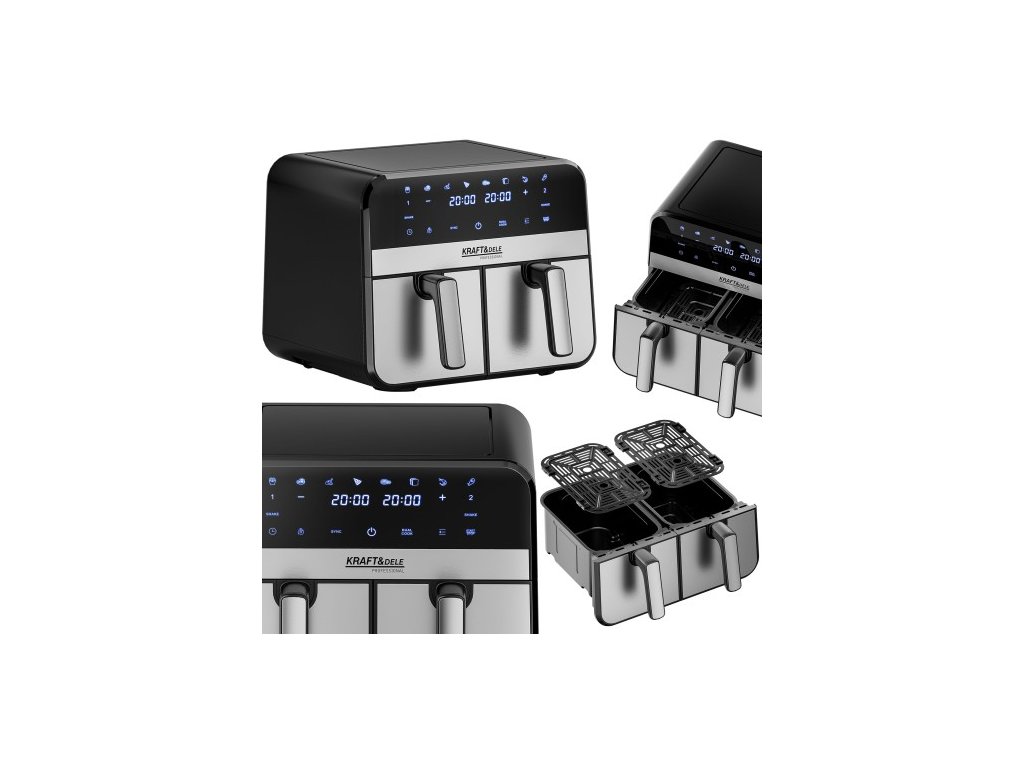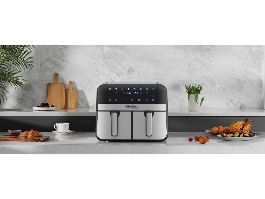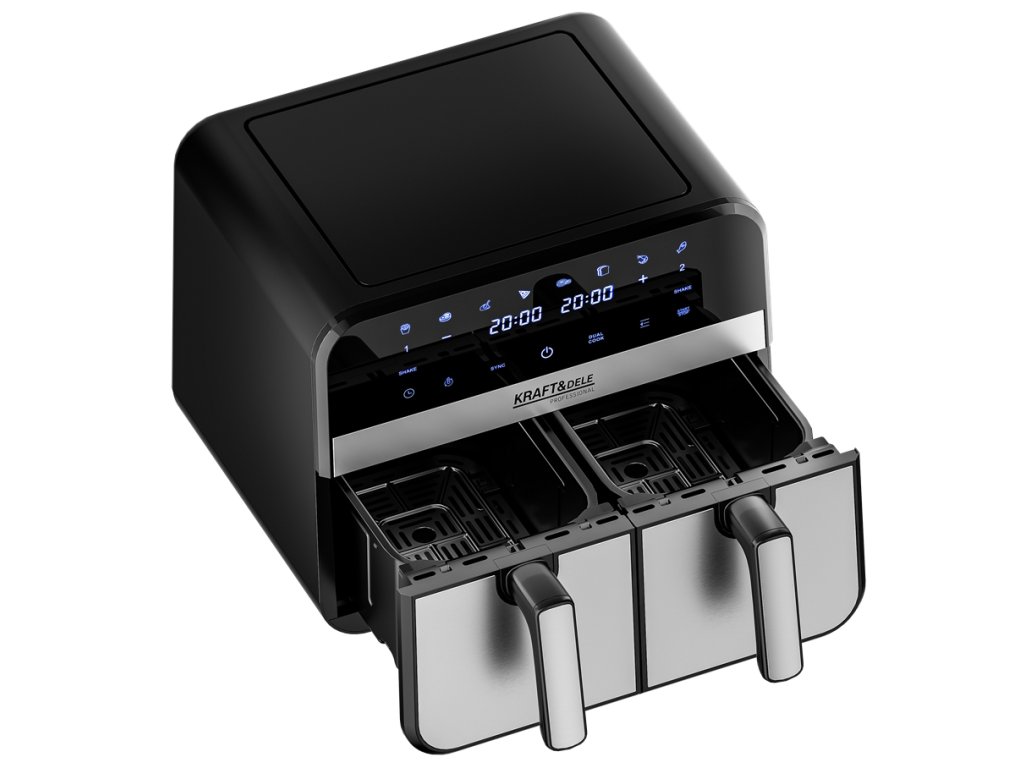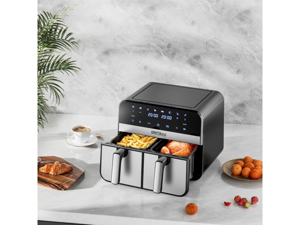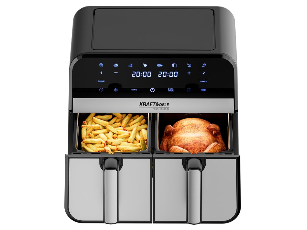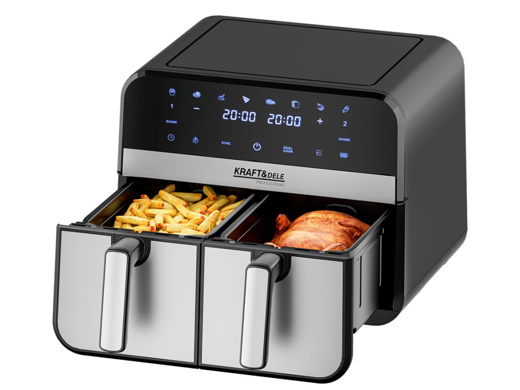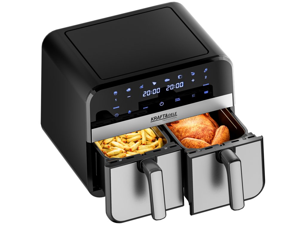 AirFryer 9L 2500W bezolovnatá fritéza s dvoma komorami a LCD displejom