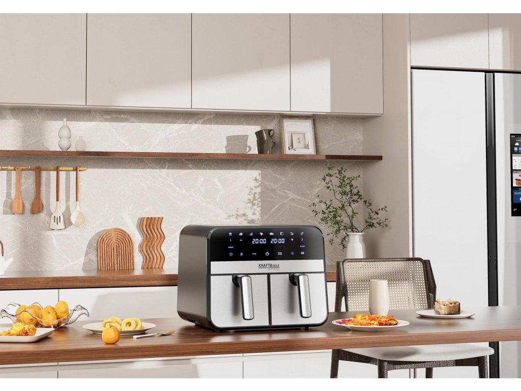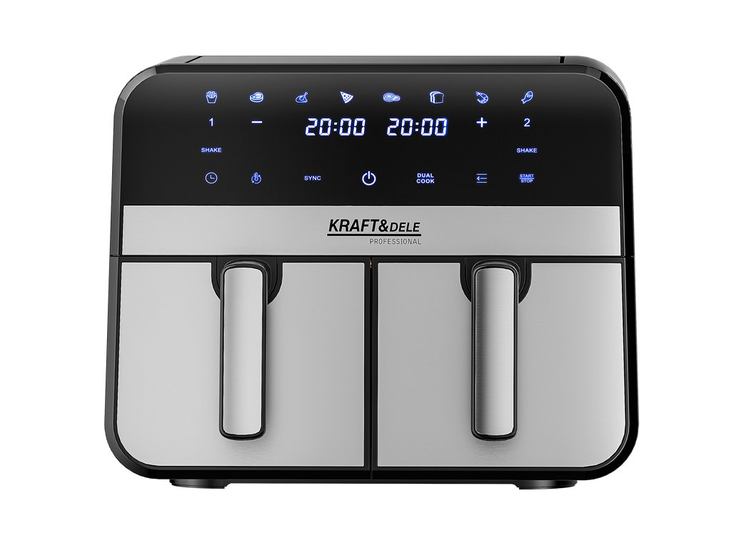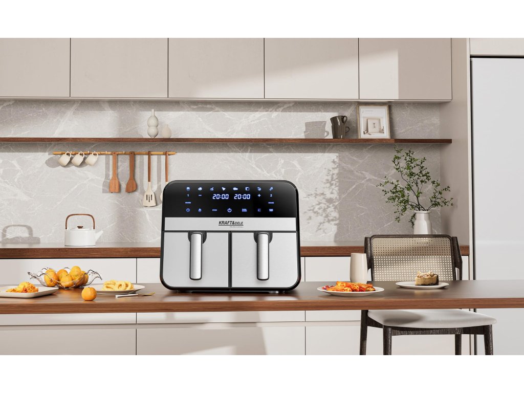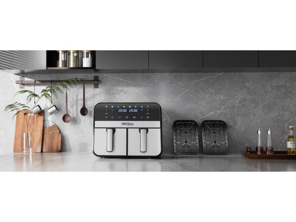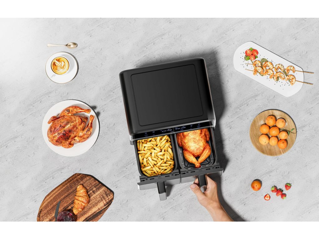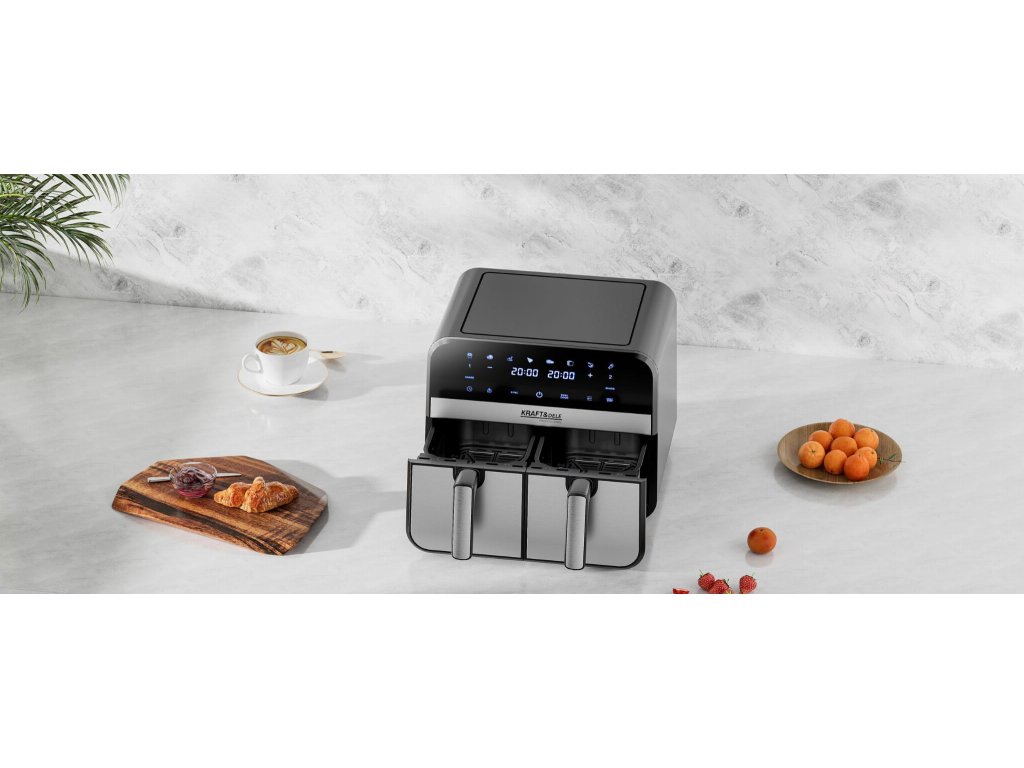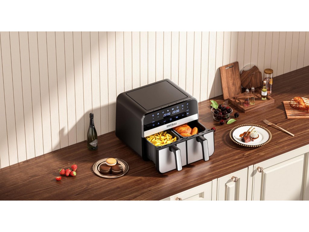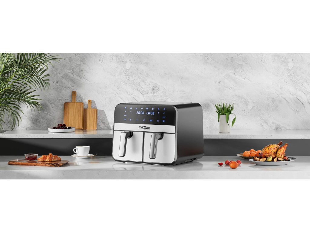 AirFryer 9L 2500W bezolovnatá fritéza s dvoma komorami a LCD displejom