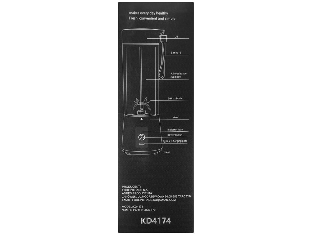 🔥 Bezdrôtový akumulátorový mixér KD4174 - 400 ml, 20 000 otáčok za minútu, nabíjanie cez USB-C