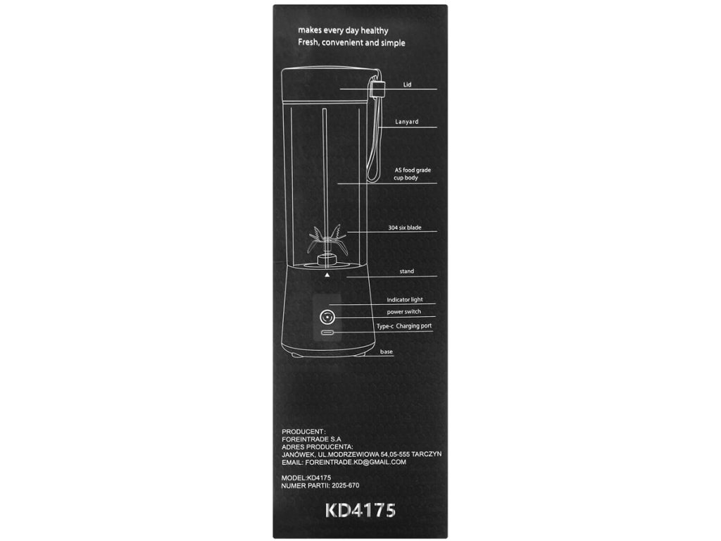 🔥 Akumulátorový mixér s nerezovým nožom 400 ml KD4175