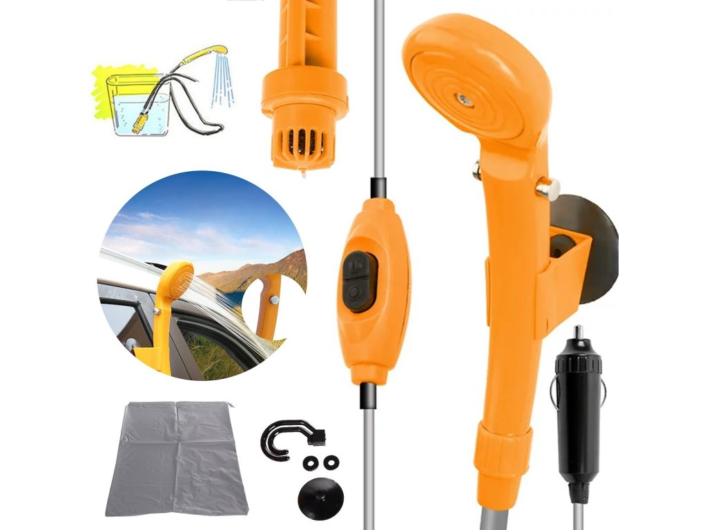 Cestovná sprcha 12V 10 l/min je prenosné zariadenie, ktoré vám umožní sprchovať sa kdekoľvek pomocou napájania z auta. Je ideálna na použitie pri cestovaní, kempovaní, turistike alebo opaľovaní.