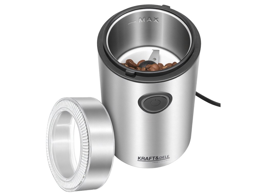 Elegantný elektrický mlynček na kávu 250 W KD4144 - kompaktný strieborný dizajn