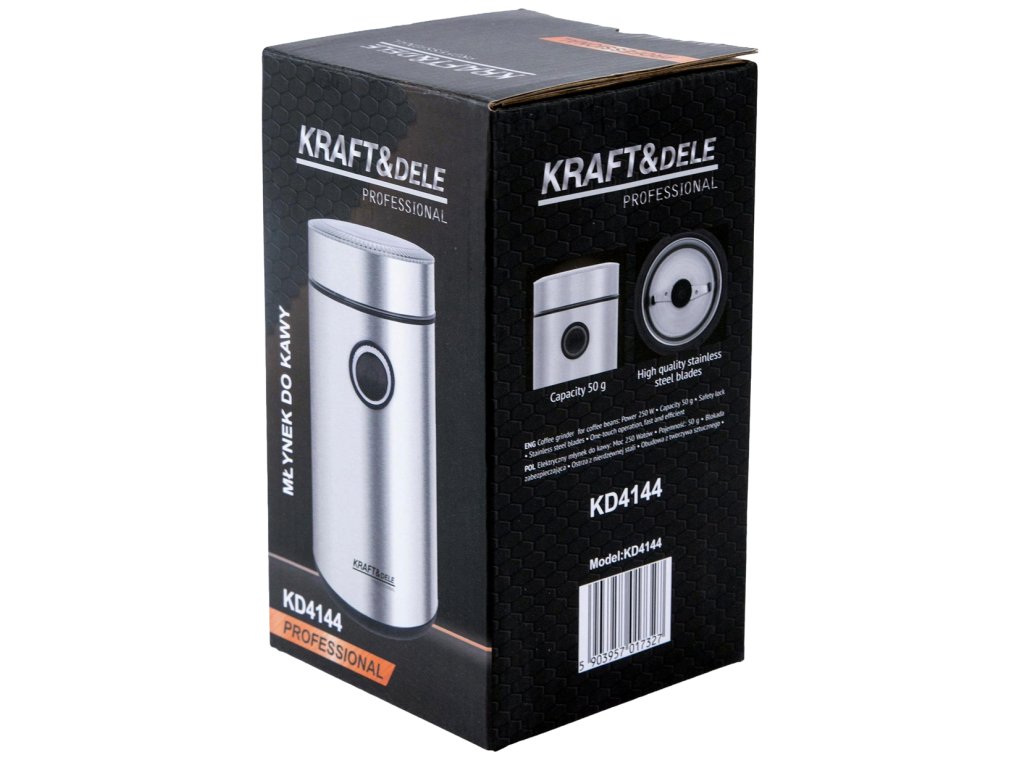 🔥 Elegantný elektrický mlynček na kávu 250W KD4144 - kompaktný strieborný dizajn