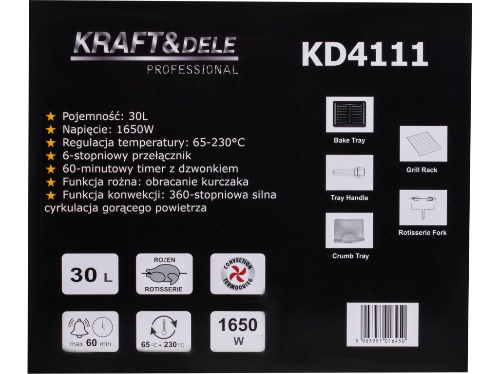 Elektrická rúra s grilom a konvekciou KD4111, 30 l, 1650 W, rozšírená sada príslušenstva
