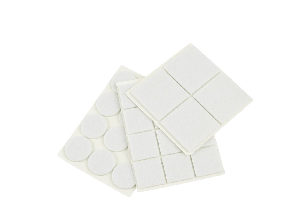 Plstené podložky pod nábytok, sada (biela) - okrúhle 25 mm a obdĺžnikové 25 x 25 mm + 40 x 40 mm, 28 ks (25/250)