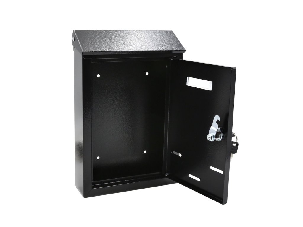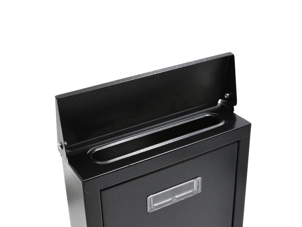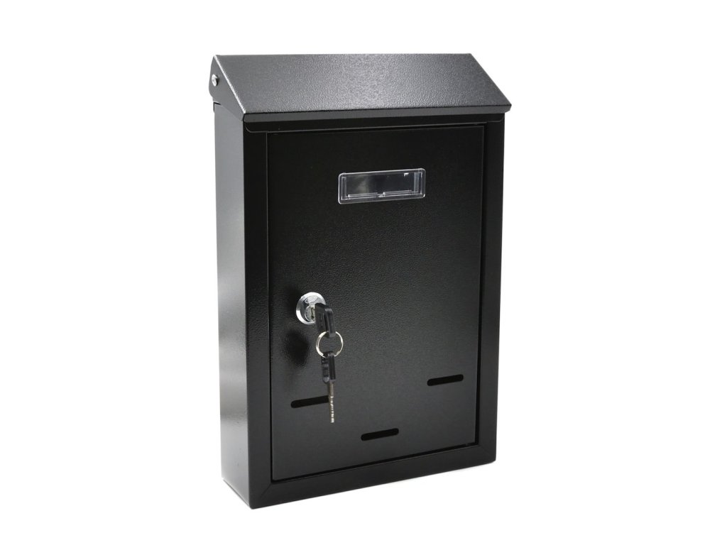 Poštová schránka je vyrobená z pozinkovanej ocelektorýju dokonalechráni pred nepriaznivými poveternostnými podmienkami. Rozmery boxu300 x 207 x 65 mm má krytý vstupný otvor pre poštu,sklopné veko účinne chráni obsah pred dažďom avetracie otvory umožniť prirodzený odtok vlhkosti, ktorá sa môže nachádzať vo vnútri škatule.Dvere sú zavesené na boku majúokno, do ktorého môžete vložiť štítok s adresou, slúži aj ako kukátkoskontrolovať, či je v poštovej schránke nejaká pošta.