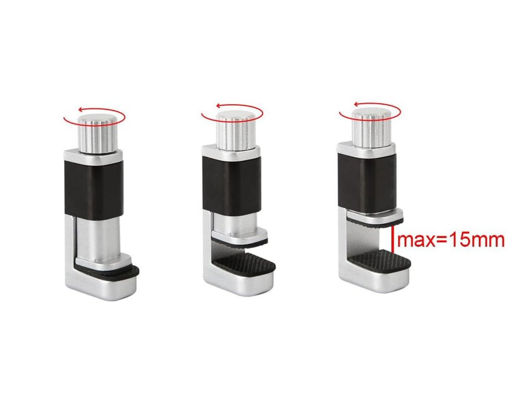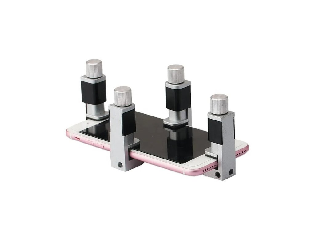 - Pogumované prítlačné plochy: každý zverák je vybavený pogumovanými prítlačnými plochami, ktoré zabezpečujú jemné uchopenie displeja bez rizika poškodenia. Pogumované povrchy tiež minimalizujú sklz a zabezpečujú pevné a stabilné uchopenie.