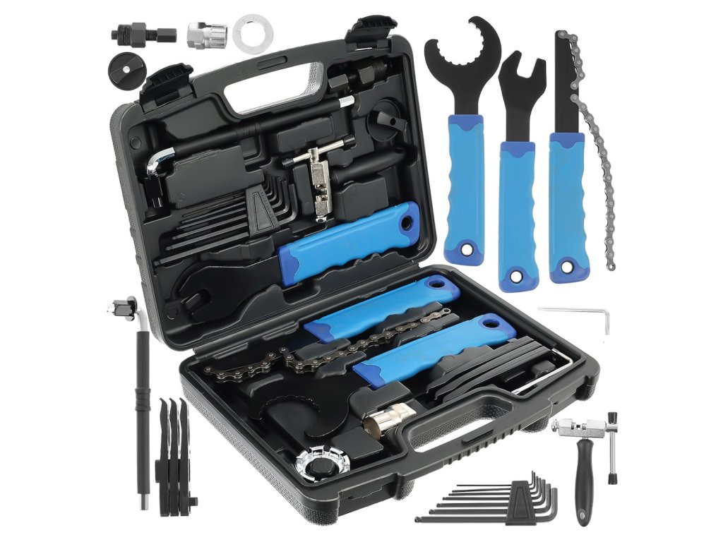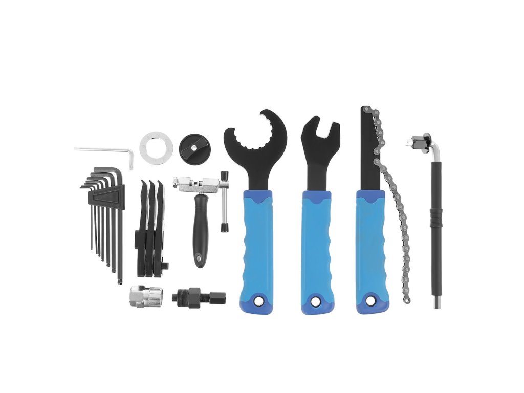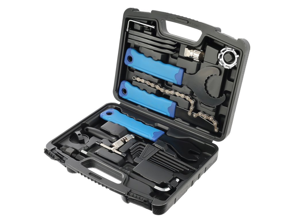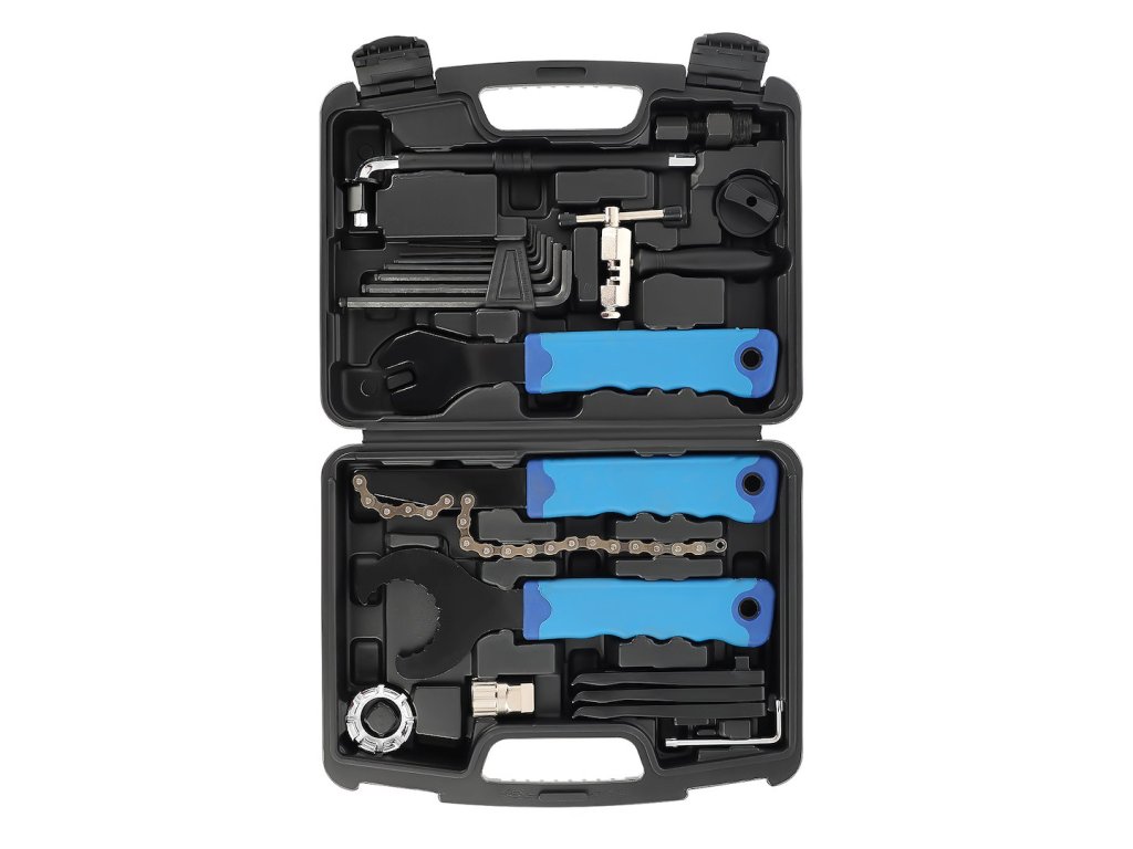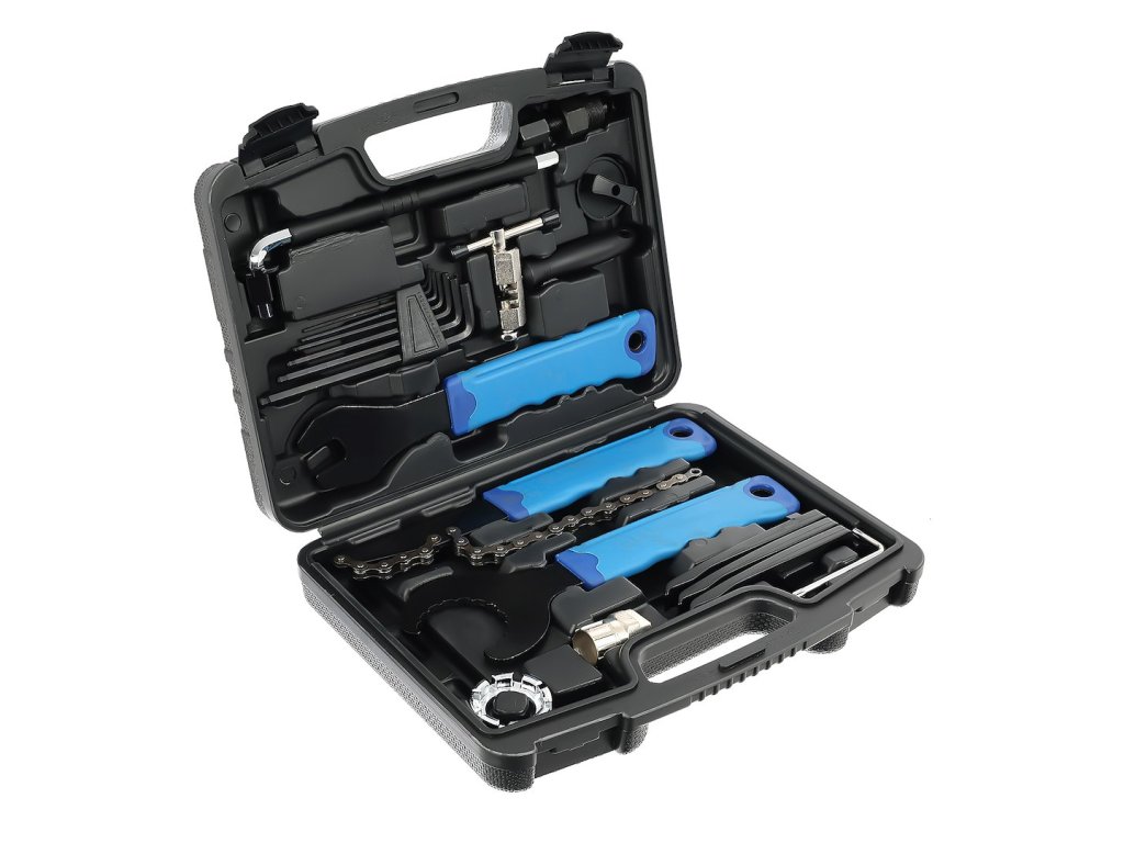 Súprava náradia na opravu a údržbu bicyklov. Súprava je veľmi užitočná pre každého amatérskeho cyklistu, ale je skvelá aj na profesionálny servis bicyklov. Súprava sa skladá z 20 dielov, ktoré umožňujú opraviť väčšinu porúch. Celá súprava je zabalená v praktickom kufríku z odolného plastu.
