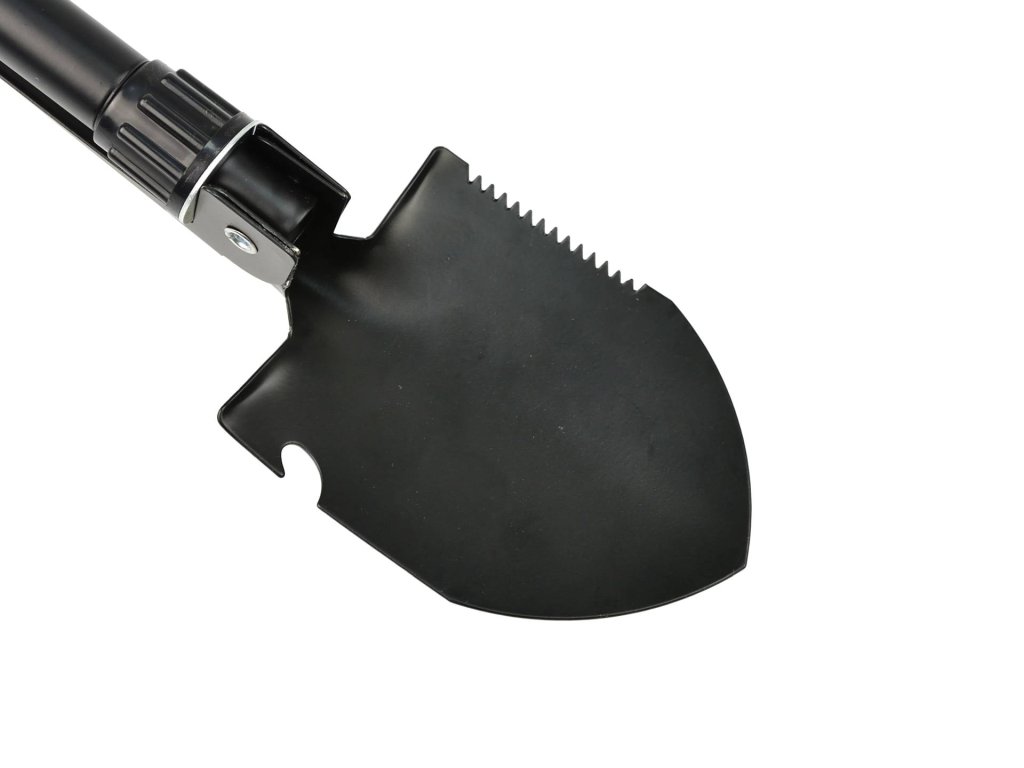 Multifunkčná skladacia lopata 4v1. Nástroj, ktorý je veľmi praktický pri kempovaní a výletoch do lesa. Vďaka možnosti zloženia zaberá lopata veľmi málo miesta, čo ocenia milovníci prežitia, ľudia chodiaci s detektormi kovov a milovníci terénu. Vyrobená z odolnej uhlíkovej ocele chránenej proti korózii. Najväčšou výhodou lopatky sú jej malé rozmery a multifunkčnosť. Možno ju používať ako klasickú lopatu a po malej úprave ju možno premeniť na minikolík. Pracovná časť lopaty je vybavená aj pílou na drevo a otváračom na fľaše.