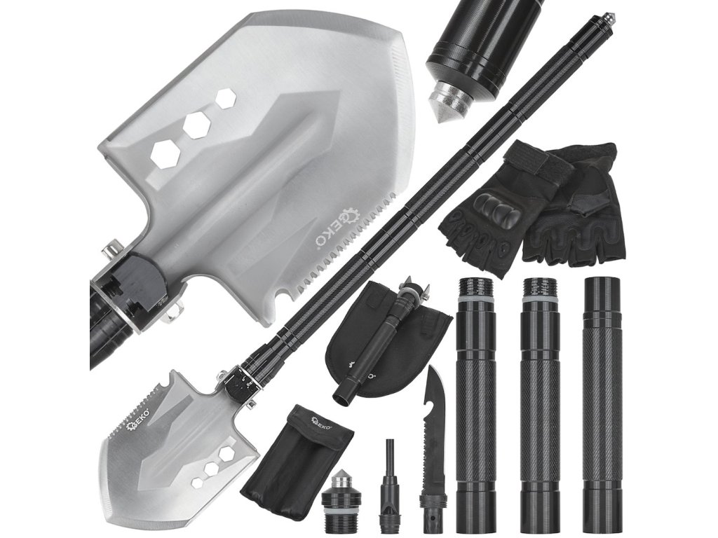 Skladacia multifunkčná lopata BLACK SURVIVAL SERIES je nepostrádateľnou pomôckou pre milovníkov prežitia, bushcraftu, turistiky a práce v teréne.Vďaka kompaktnému dizajnu, odolným materiálom a rozšíriteľným funkciám sa osvedčí v extrémnych vonkajších podmienkach, ako aj pri každodennom používaní. Je to skvelá voľba pre tých, ktorí ocenia praktickosť, odolnosť a pohodlie pri používaní.