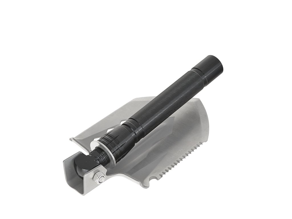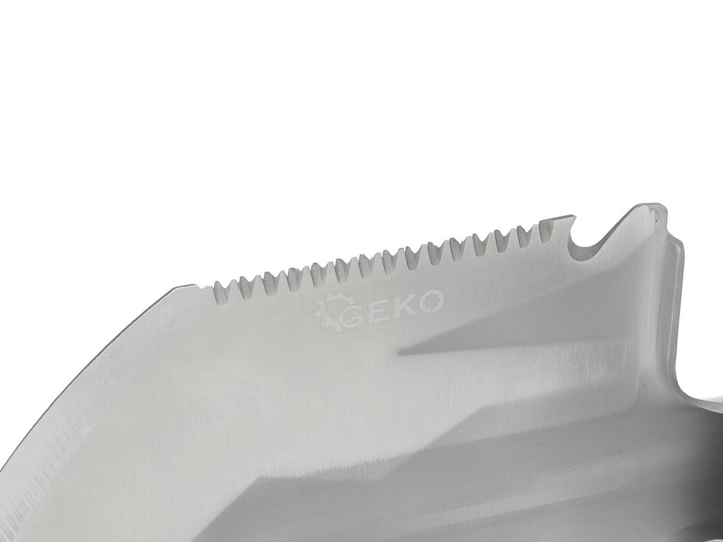 - Ďalšie funkcie: rozbíjač skla, kremeň, píšťalka, nôž, kľúče 10 mm, 13 mm, 14 mm, pílka na drevo, naostrená hrana rukoväte