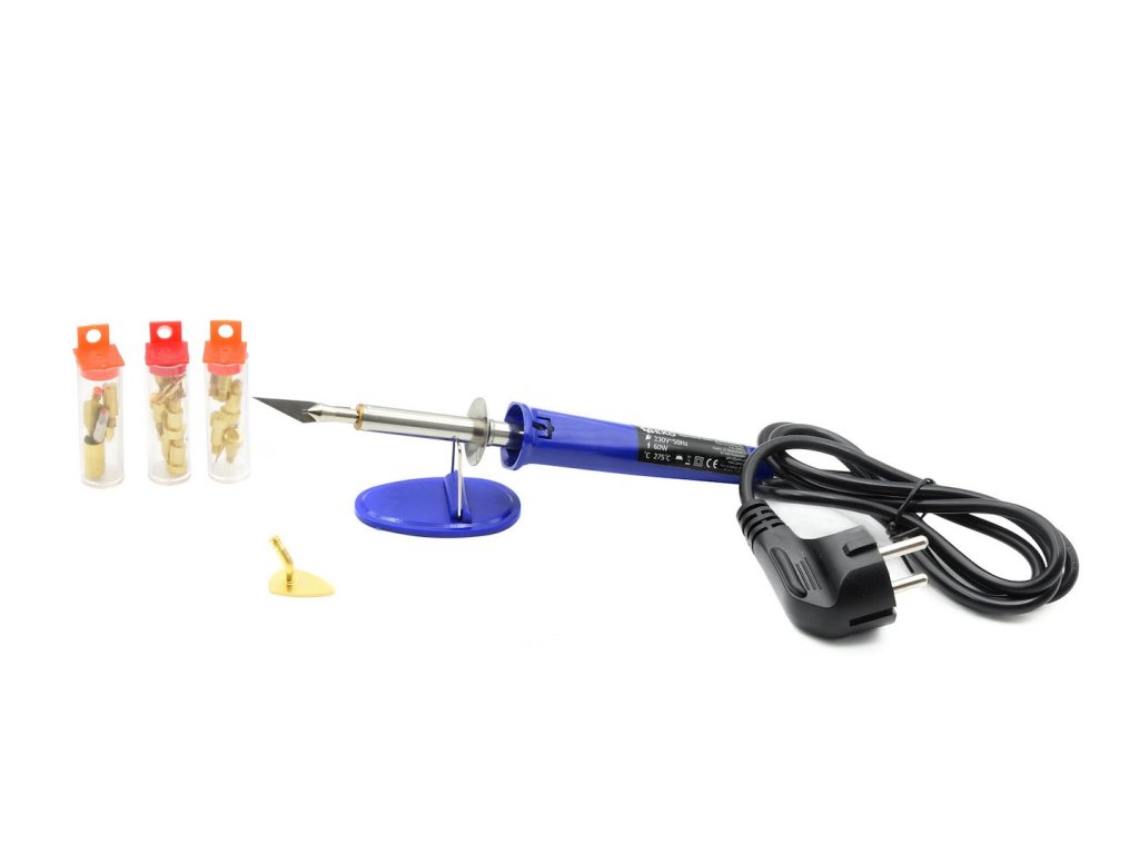 60 W horák na drevo a kožu so sadou 23 rôznych hrotov a podstavcom. Ideálny na vypaľovanie dekoratívnych vzorov, kresieb do dreva, kože, korku atď.