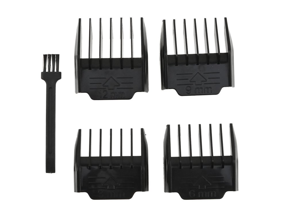 Rýchle a presné rezanie poskytujekeramická horná čepeľ apevná titánová čepeľ. Nastaveniadĺžka rezu od 0,8 do 2,0 mm sa vykonáva pomocou otočného gombíka na hlave stroja. Súprava obsahujesada nadstavcov, ktoré predlžujú dĺžku rezu o ďalšie 3 mm, 6 mm, 9 mm a 12 mm.
