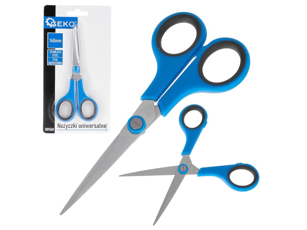 Univerzálne nožnice vyrobené z nehrdzavejúcej ocele 2Cr13. Celková dĺžka je 140 mm , hrúbka čepele je 1,5 mm.
