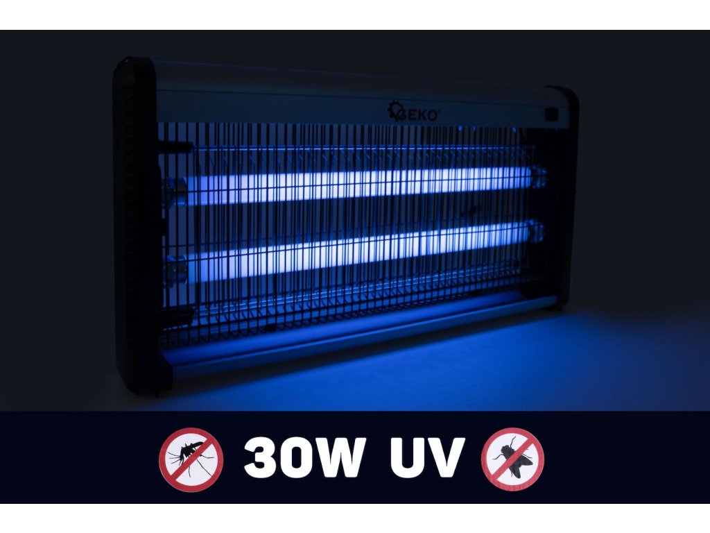 Zbavte sa otravného hmyzu raz a navždy pomocou 30W UV lampy proti hmyzu Geko! Je to zariadenie, ktoré priťahuje a účinne neutralizuje lietajúci hmyz pomocou UV-A žiarenia, ktoré je bezpečné pre ľudí a zvieratá
