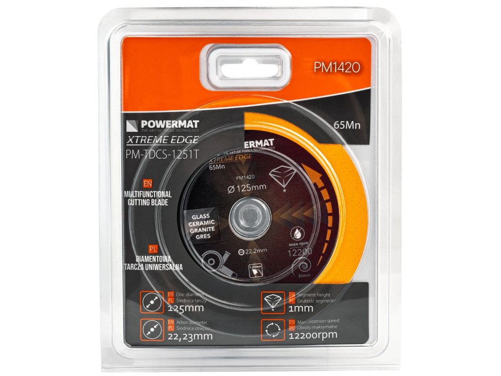 Diamantový kotúč POWERMAT PM-TDCS-1251T s priemerom 125 mm je určený na presné a čisté rezanie skla, keramiky, dlaždíc, kameňa a iných tvrdých materiálov. Vďaka svojmu tenkému reznému profilu a obojstrannému diamantovému povlaku poskytuje hladké hrany bez triesok a dlhú životnosť aj pri náročnej práci.